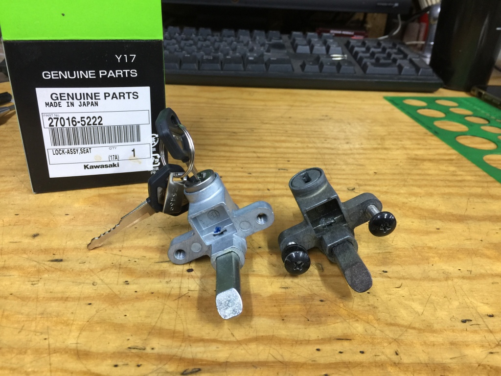 投稿日: 2019年1月17日2019年1月17日純正部品情報 Z1Rシートロック 先のブログにも登場しましたが、あらためてZ1Rに使えるシートロックをご紹介します。 部品はバリウスZR250-A1などの純正品で、プランジャーの長さを加工するとZ1Rに装着できます。 部品番号 27016-5222 税抜き価格3,320円(2019年1月現在) 代表機種 ZR250-A5(BALIUS) 取り付けなど、外観と寸法は同一です。 “純正部品情報 Z1Rシートロック” の続きを読む