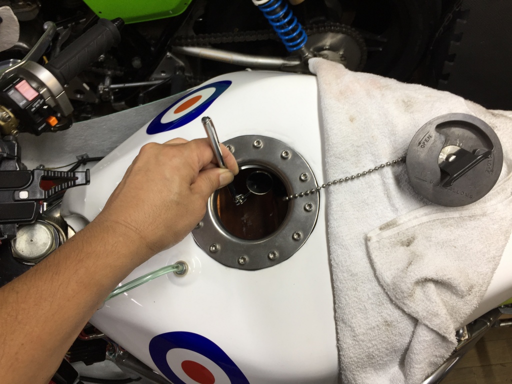 投稿日: 2018年7月16日モトマーチンZ F様 試運転 タンクキャップのボルト座面からガソリンが滲むとのこと。 裏側は単純にナット止めなので、ボルトのネジを伝ってガソリンが上がってくるのでしょう。 “モトマーチンZ F様 試運転” の続きを読む