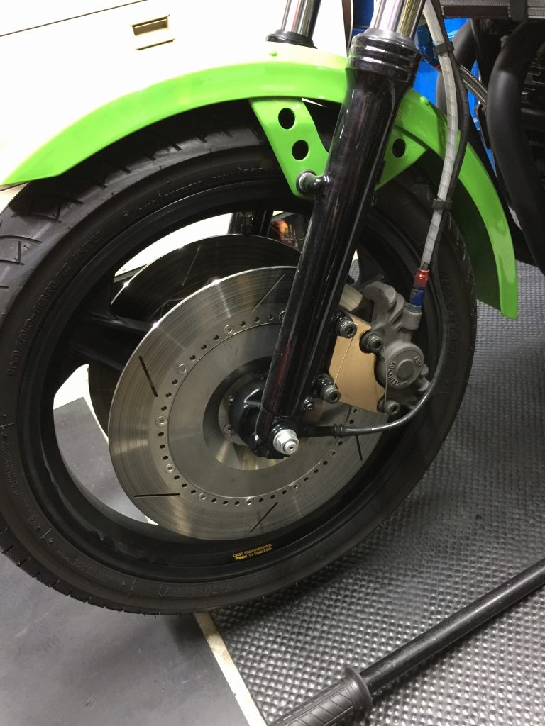前後ローターを弊社のS1タイプに変更するので、ホイールを外して寸法計測します。