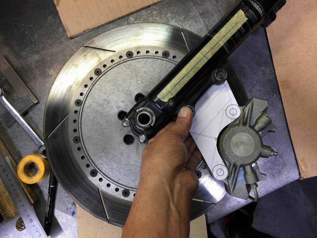 フロントのキャリパーサポートは、S1同様の曲げプレートタイプで検討中です。