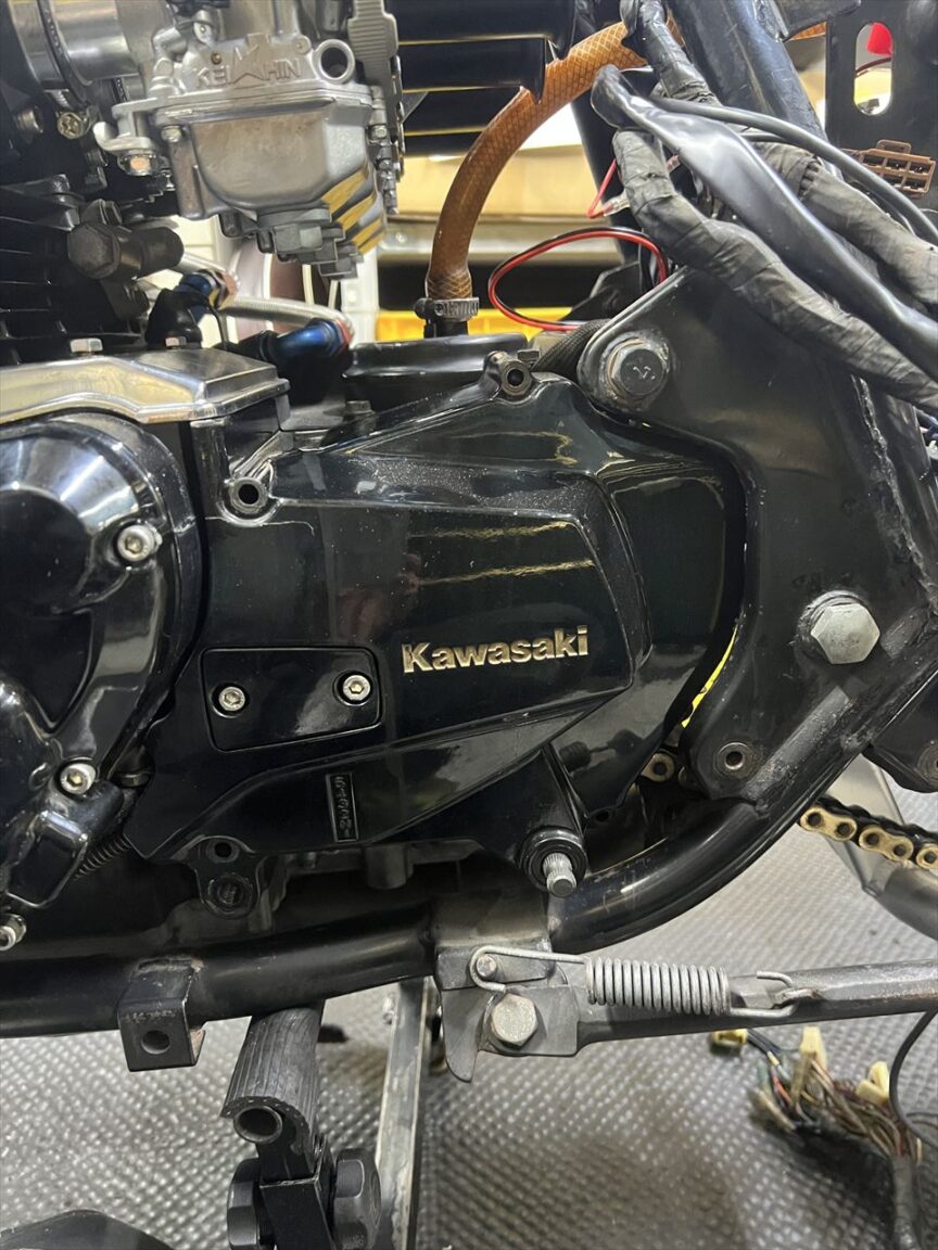 ハーネスはスプロケカバー内にも繋がっているのでカバーを外そうとしますが、フレーム干渉して外れません。